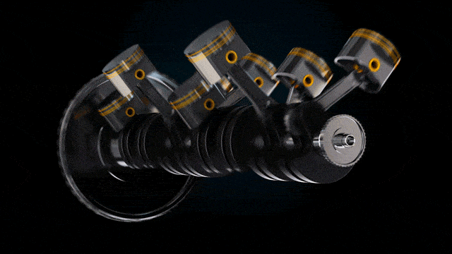 3. This movement turns a crankshaft, converting the motion into rotational energy.